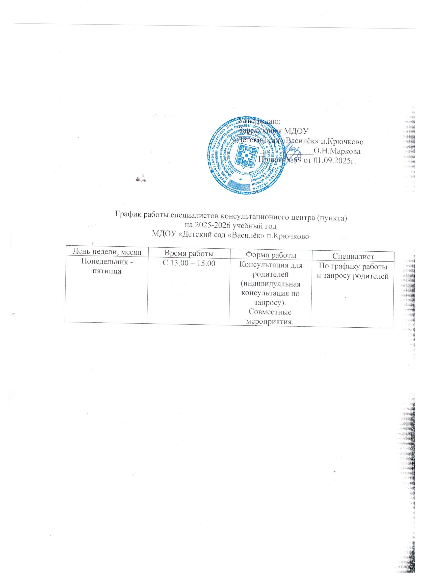 На базе МДОУ «Детский сад "Василёк» п.Крючково работает бесплатный консультационный пункт для родителей